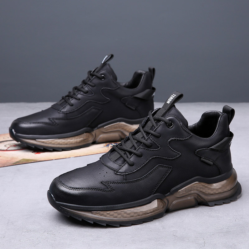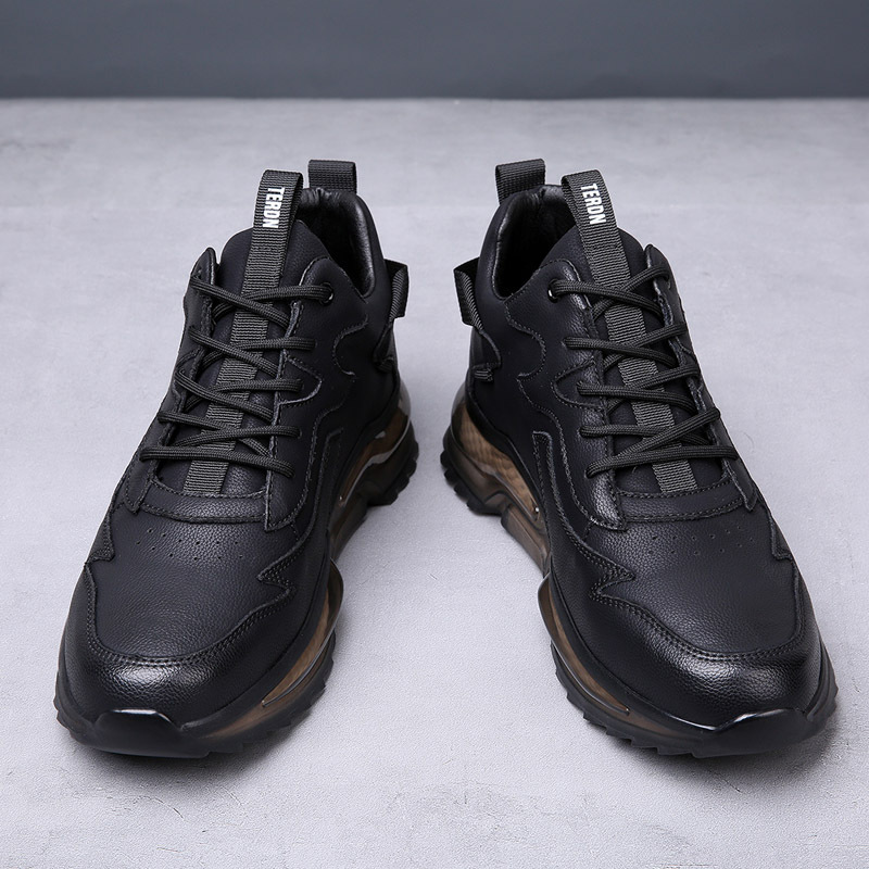 新款透气厚底运动休闲皮鞋男士真皮百搭增高潮鞋